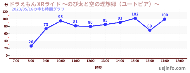 • ドラえもん XRライド ~のび太と空の理想郷(ユートピア)~$B$N(B2023年05月16日の待ち時間