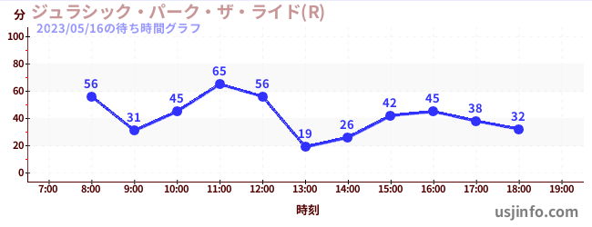 • ジュラシック・パーク・ザ・ライド(R)$B$N(B2023年05月16日の待ち時間