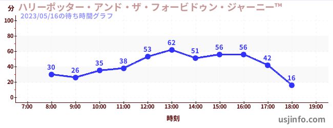 • ハリーポッター・アンド・ザ・フォービドゥン・ジャーニー™$B$N(B2023年05月16日の待ち時間