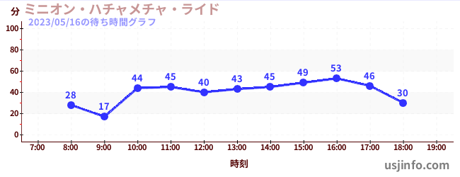 • ミニオン・ハチャメチャ・ライド$B$N(B2023年05月16日の待ち時間
