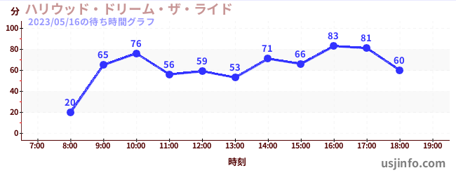 • ハリウッド・ドリーム・ザ・ライド$B$N(B2023年05月16日の待ち時間