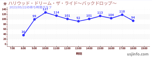 • ハリウッド・ドリーム・ザ・ライド〜バックドロップ〜$B$N(B2023年05月22日の待ち時間