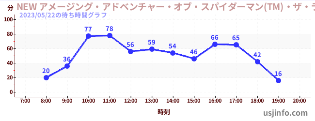 • NEW アメージング・アドベンチャー・オブ・スパイダーマン(TM)・ザ・ライド 4K3D$B$N(B2023年05月22日の待ち時間
