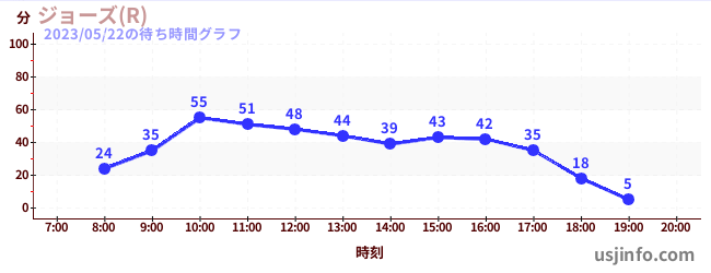• ジョーズ(R)$B$N(B2023年05月22日の待ち時間