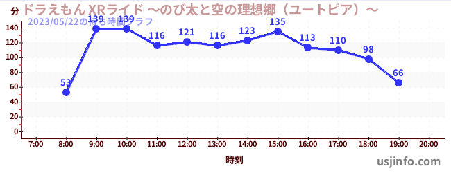 • ドラえもん XRライド ~のび太と空の理想郷(ユートピア)~$B$N(B2023年05月22日の待ち時間