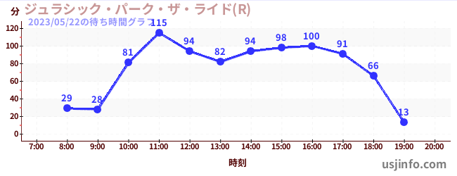 • ジュラシック・パーク・ザ・ライド(R)$B$N(B2023年05月22日の待ち時間