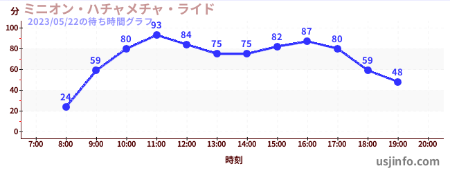 • ミニオン・ハチャメチャ・ライド$B$N(B2023年05月22日の待ち時間