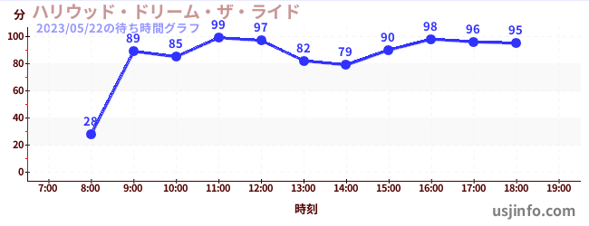 • ハリウッド・ドリーム・ザ・ライド$B$N(B2023年05月22日の待ち時間