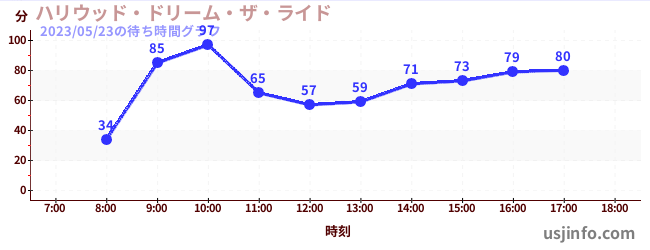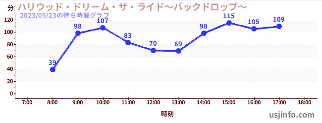 • ハリウッド・ドリーム・ザ・ライド〜バックドロップ〜$B$N(B2023年05月23日の待ち時間