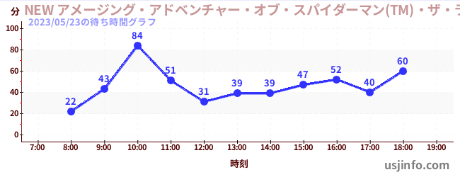 • NEW アメージング・アドベンチャー・オブ・スパイダーマン(TM)・ザ・ライド 4K3D$B$N(B2023年05月23日の待ち時間