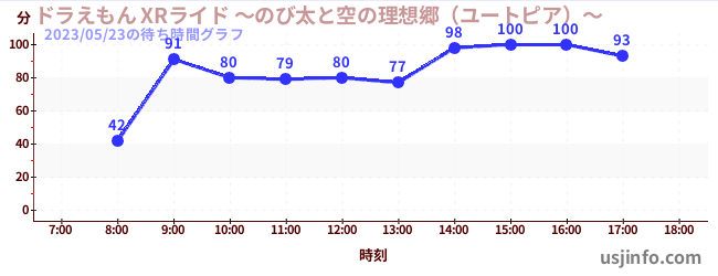 • ドラえもん XRライド ~のび太と空の理想郷(ユートピア)~$B$N(B2023年05月23日の待ち時間