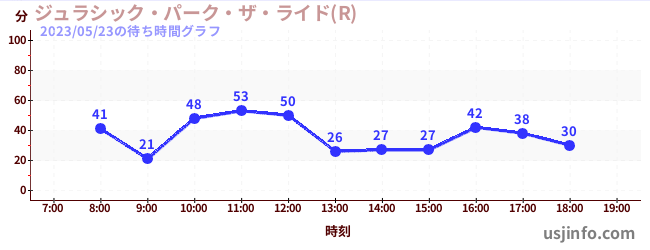 • ジュラシック・パーク・ザ・ライド(R)$B$N(B2023年05月23日の待ち時間