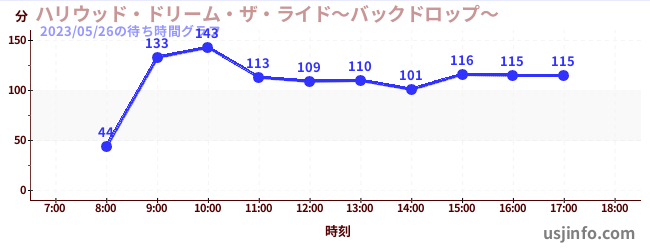 • ハリウッド・ドリーム・ザ・ライド〜バックドロップ〜$B$N(B2023年05月26日の待ち時間