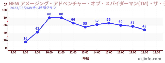 • NEW アメージング・アドベンチャー・オブ・スパイダーマン(TM)・ザ・ライド 4K3D$B$N(B2023年05月26日の待ち時間