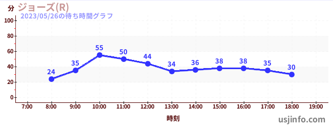 • ジョーズ(R)$B$N(B2023年05月26日の待ち時間