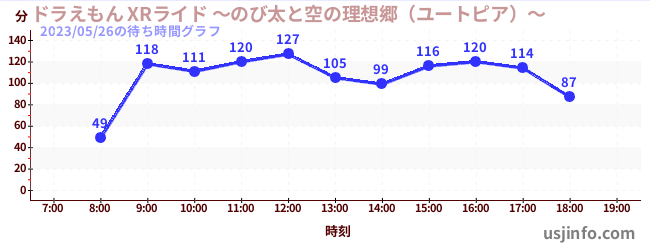• ドラえもん XRライド ~のび太と空の理想郷(ユートピア)~$B$N(B2023年05月26日の待ち時間