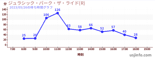 • ジュラシック・パーク・ザ・ライド(R)$B$N(B2023年05月26日の待ち時間