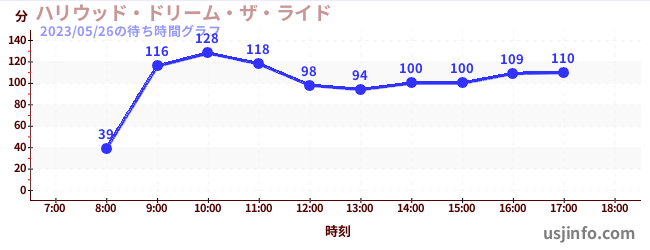 • ハリウッド・ドリーム・ザ・ライド$B$N(B2023年05月26日の待ち時間