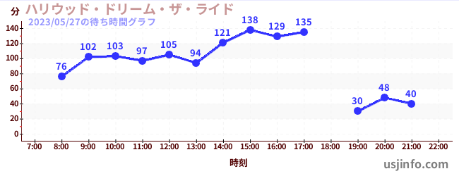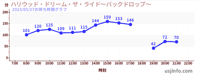 • ハリウッド・ドリーム・ザ・ライド〜バックドロップ〜$B$N(B2023年05月27日の待ち時間