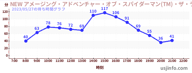 • NEW アメージング・アドベンチャー・オブ・スパイダーマン(TM)・ザ・ライド 4K3D$B$N(B2023年05月27日の待ち時間
