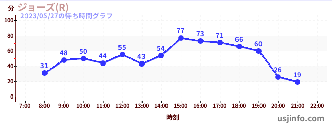 • ジョーズ(R)$B$N(B2023年05月27日の待ち時間