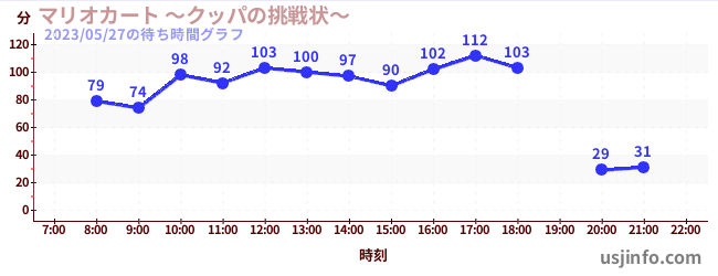 • マリオカート ~クッパの挑戦状~$B$N(B2023年05月27日の待ち時間