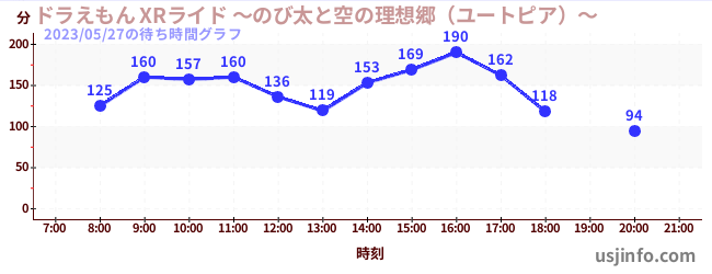 • ドラえもん XRライド ~のび太と空の理想郷(ユートピア)~$B$N(B2023年05月27日の待ち時間