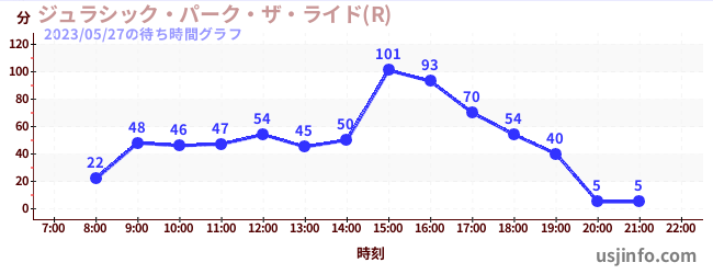 • ジュラシック・パーク・ザ・ライド(R)$B$N(B2023年05月27日の待ち時間