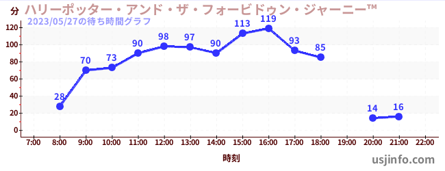 • ハリーポッター・アンド・ザ・フォービドゥン・ジャーニー™$B$N(B2023年05月27日の待ち時間
