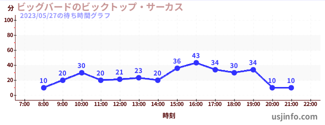 • ビッグバードのビックトップ・サーカス$B$N(B2023年05月27日の待ち時間