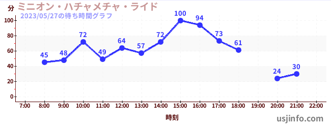 • ミニオン・ハチャメチャ・ライド$B$N(B2023年05月27日の待ち時間