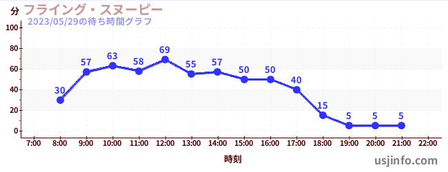 • フライング・スヌーピー$B$N(B2023年05月29日の待ち時間