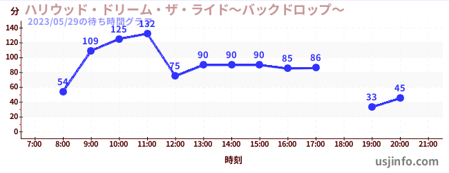 • ハリウッド・ドリーム・ザ・ライド〜バックドロップ〜$B$N(B2023年05月29日の待ち時間