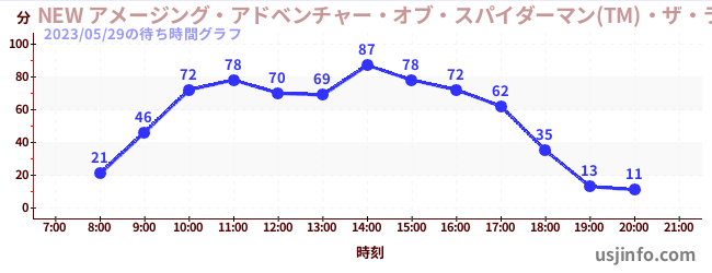 • NEW アメージング・アドベンチャー・オブ・スパイダーマン(TM)・ザ・ライド 4K3D$B$N(B2023年05月29日の待ち時間