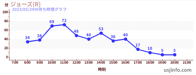 • ジョーズ(R)$B$N(B2023年05月29日の待ち時間