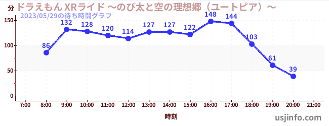 • ドラえもん XRライド ~のび太と空の理想郷(ユートピア)~$B$N(B2023年05月29日の待ち時間