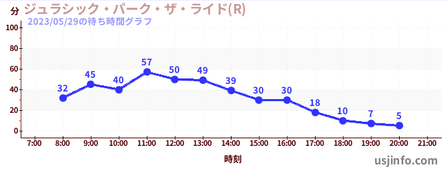 • ジュラシック・パーク・ザ・ライド(R)$B$N(B2023年05月29日の待ち時間