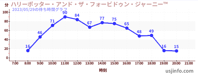 • ハリーポッター・アンド・ザ・フォービドゥン・ジャーニー™$B$N(B2023年05月29日の待ち時間