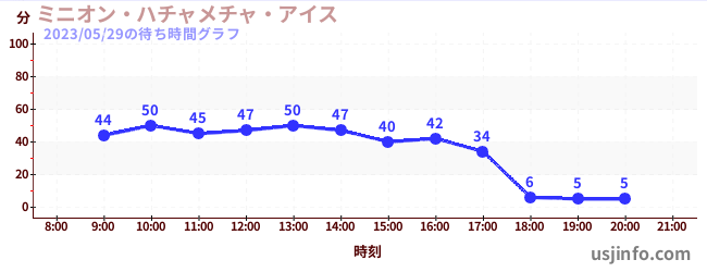 • ミニオン・ハチャメチャ・ライド$B$N(B2023年05月29日の待ち時間