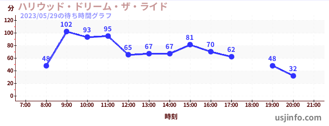 • ハリウッド・ドリーム・ザ・ライド$B$N(B2023年05月29日の待ち時間