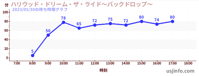 • ハリウッド・ドリーム・ザ・ライド〜バックドロップ〜$B$N(B2023年05月30日の待ち時間
