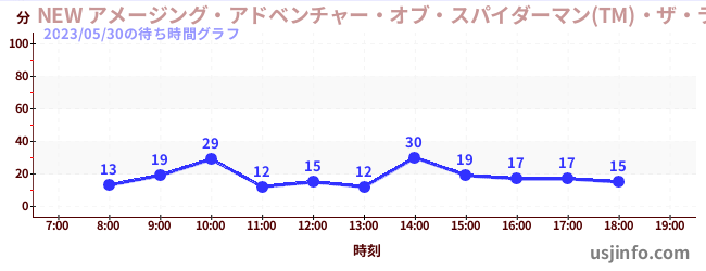 • NEW アメージング・アドベンチャー・オブ・スパイダーマン(TM)・ザ・ライド 4K3D$B$N(B2023年05月30日の待ち時間