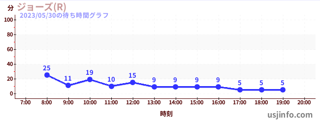 • ジョーズ(R)$B$N(B2023年05月30日の待ち時間