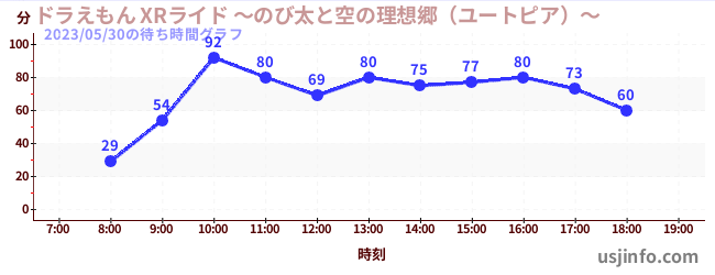 • ドラえもん XRライド ~のび太と空の理想郷(ユートピア)~$B$N(B2023年05月30日の待ち時間