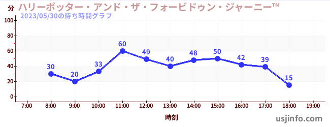 • ハリーポッター・アンド・ザ・フォービドゥン・ジャーニー™$B$N(B2023年05月30日の待ち時間