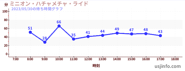 • ミニオン・ハチャメチャ・ライド$B$N(B2023年05月30日の待ち時間