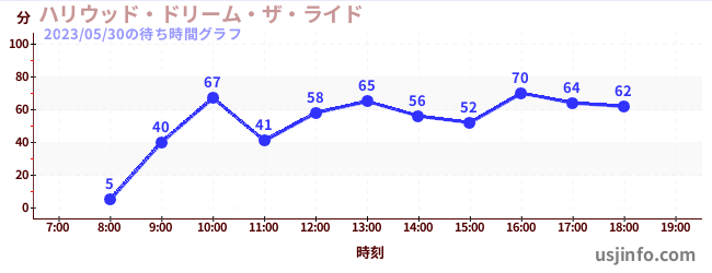 • ハリウッド・ドリーム・ザ・ライド$B$N(B2023年05月30日の待ち時間