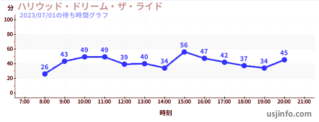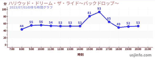 • ハリウッド・ドリーム・ザ・ライド〜バックドロップ〜$B$N(B2023年07月01日の待ち時間