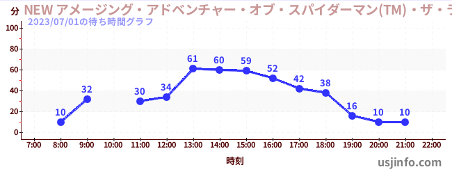 • NEW アメージング・アドベンチャー・オブ・スパイダーマン(TM)・ザ・ライド 4K3D$B$N(B2023年07月01日の待ち時間