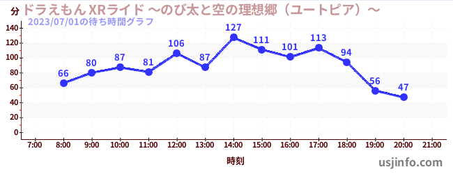 • ドラえもん XRライド ~のび太と空の理想郷(ユートピア)~$B$N(B2023年07月01日の待ち時間